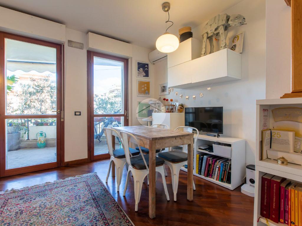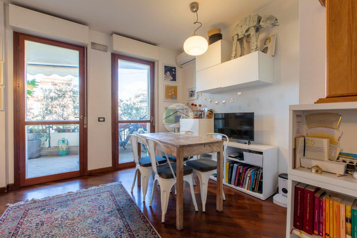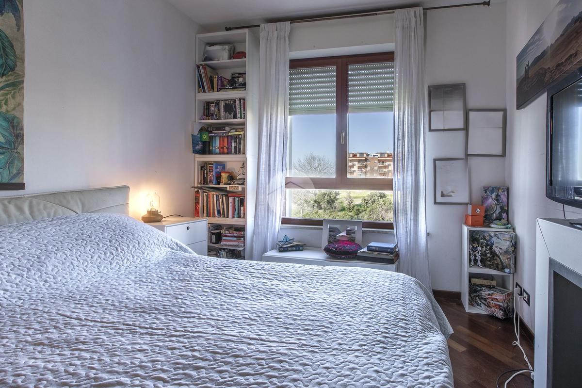 Nel quartiere di Torrino Mezzocammino, in Largo Guido Martina, proponiamo in vendita un appartamento trilocale al secondo piano di una palazzina di quattro con ascensore. L'immobile è composto da due camere da letto accoglienti, un soggiorno luminoso con predisposizione per angolo cottura, doppi servizi, di cui uno finestrato ed un altro en suite. L'appartamento dispone di un balcone e di un terrazzo, che grazie all'affaccio completamente libero regalano la possibilità di vivere momenti di relax all'aria aperta. Completano la proprietà un box auto, un posto auto scoperto e una cantina. L'appartamento è fornito di impianto di condizionamento, grate di sicurezza e tende da sole. Questa soluzione abitativa è perfetta per chi cerca un contesto residenziale tranquillo e ben collegato al centro città.