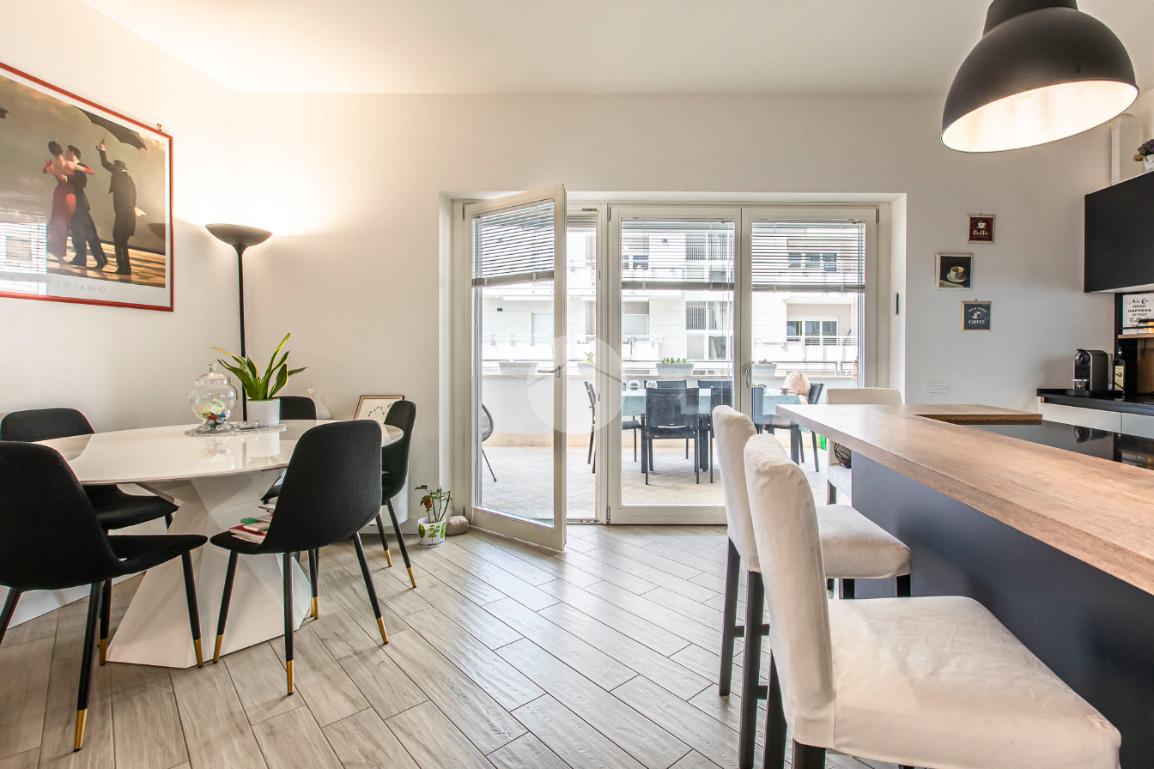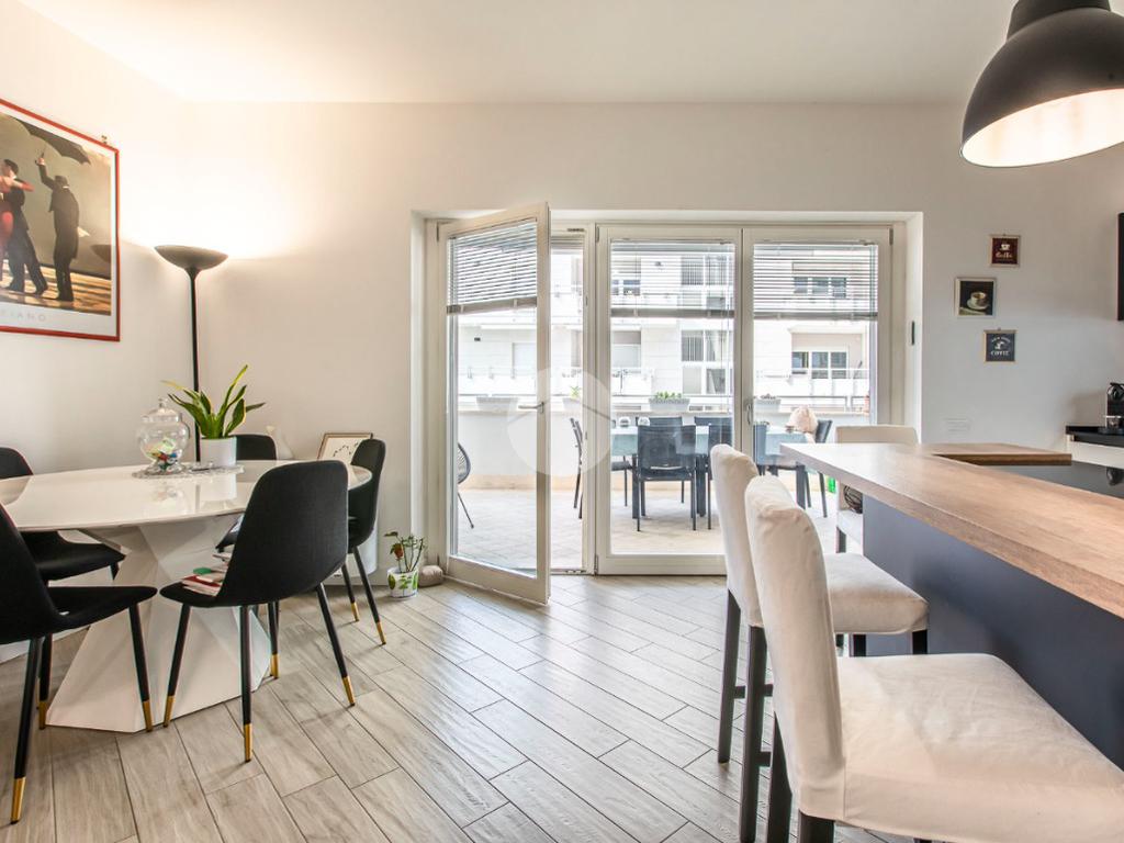 Nel cuore di Torrino Mezzocammino, a pochi passi dalla centrale Piazza dei Fumetti, in via Giuseppe Lucchetti Rossi proponiamo in vendita un quadrilocale di nuova costruzione, situato al secondo piano di un edificio moderno di sette piani con ascensore. L'immobile, costruito e ristrutturato nel 2021, offre spazi ben distribuiti, finiture di qualità e materiali di pregio. La zona giorno si apre su un ampio soggiorno con cucina a vista funzionale ed attrezzata, ideale per momenti di relax e convivialità. L'ambiente è collegato al comodo terrazzo che offre uno spazio esterno privato. Troviamo poi tre camere da letto, di cui una matrimoniale con all'interno una comoda cabina armadio. Un balcone aggiunge ulteriore spazio all'aperto. A disposizione della soluzione abbiamo doppi servizi, entrambi finestrati. Completano la proprietà un box auto ed una cantina di pertinenza. L'appartamento è dotato di aria condizionata in ogni camera, serrande e tende da sole elettriche, predisposizione per impianto di domotica ed allarme, pannelli fotovoltaici. Classe energetica A2. Questa soluzione abitativa è perfetta per chi cerca un ambiente elegante e contemporaneo nel centro commerciale del quartiere.