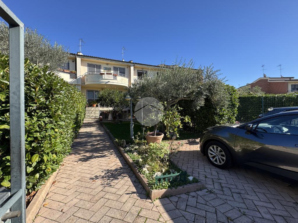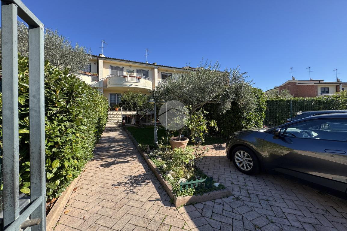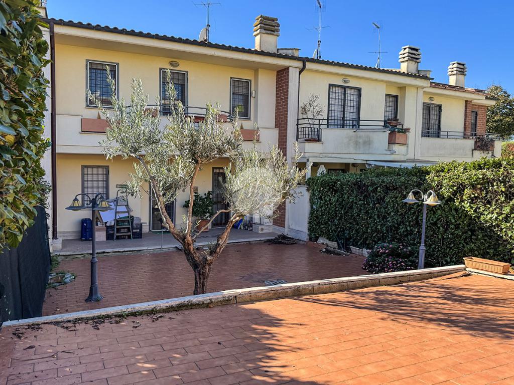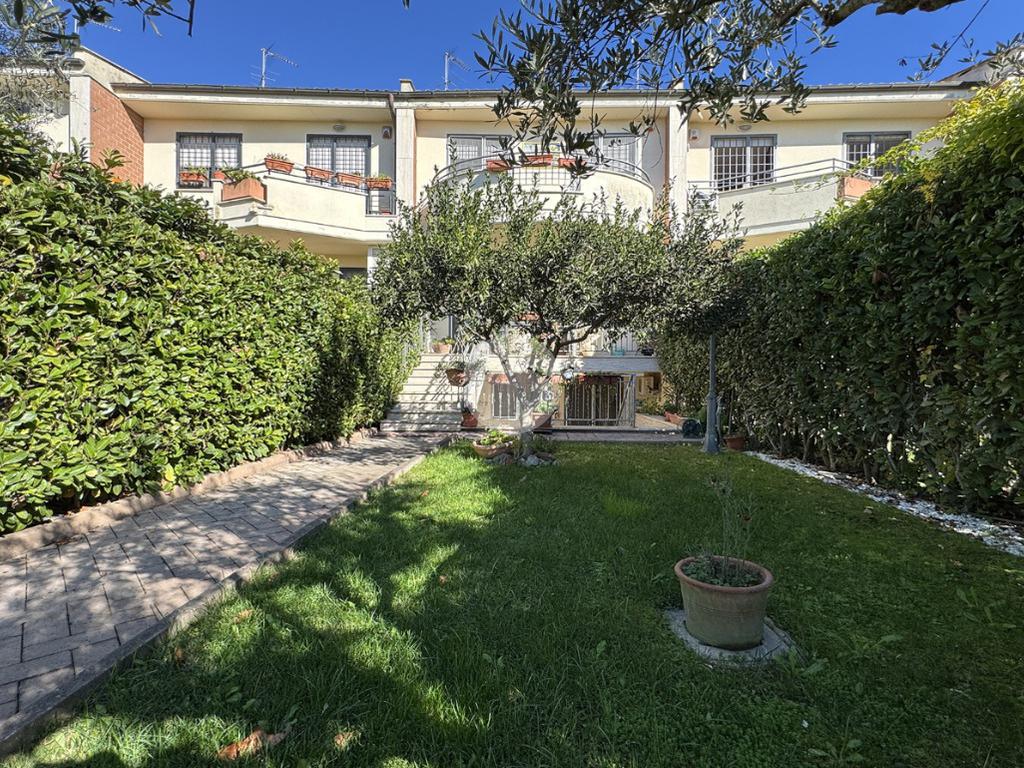 In via Mario Gentilini, nel quartiere di Torrino Mezzocammino, proponiamo in vendita una villa a schiera in ottimo stato interno, rifinita con cura in ogni singolo dettaglio ed arricchita con numerosi materiali di pregio. Il giardino frontale, in parte verde ed in parte mattonato, offre la possibilità di parcheggiare internamente, la parte retrostante, mattonata e con barbecue in muratura, permette di potersi ritagliare piacevoli momenti di relax da vivere all'aria aperta. L'immobile ha una esposizione Sud Est - Nord Ovest e si sviluppa su tre livelli. Al piano terra, oltrepassando il patio ed entrando dalla porta di ingresso troviamo un ampio salone di rappresentanza, da qui una porta finestra ci fa accedere al giardino. A disposizione abbiamo un servizio finestrato. Salendo le scale arriviamo al primo piano dove si svilippa la zona notte con tre comode camere da letto, una delle quali con bagno finestrato en suite, e la camera matrimoniale ha al suo interno una cabina armadio. Troviamo un ulteriore servizio e due ampi balconi. Il piano seminterrato risulta spazioso e luminoso, con una cucina in muratura creata su misura, zona living e servizio con porta finestra. La soluzione è fornita di grate di sicurezza, zanzariere, allarme ed impianto di condizionamento posizionato su ogni piano. Completa la proprietà un posto auto privato scoperto.