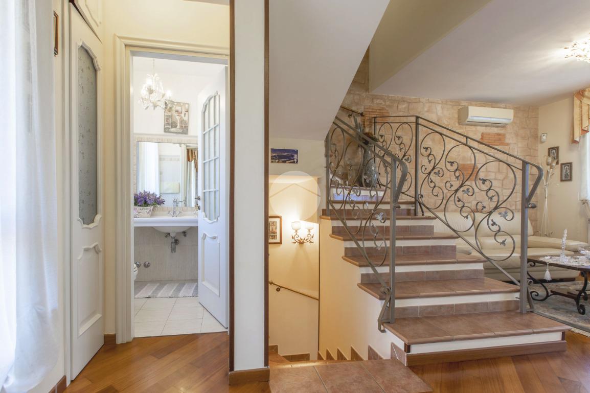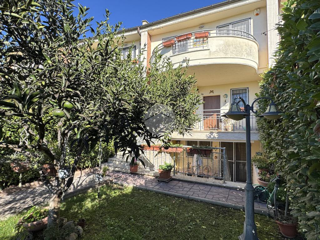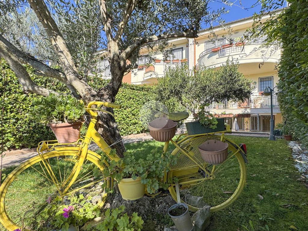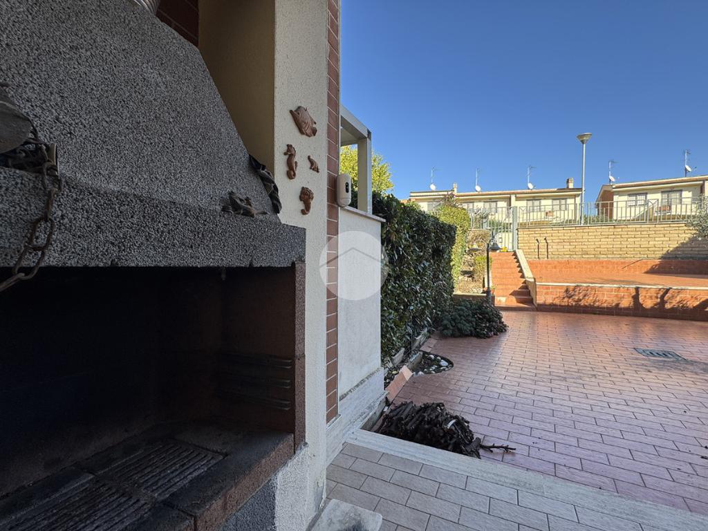 In via Mario Gentilini, nel quartiere di Torrino Mezzocammino, proponiamo in vendita una villa a schiera in ottimo stato interno, rifinita con cura in ogni singolo dettaglio ed arricchita con numerosi materiali di pregio. Il giardino frontale, in parte verde ed in parte mattonato, offre la possibilità di parcheggiare internamente, la parte retrostante, mattonata e con barbecue in muratura, permette di potersi ritagliare piacevoli momenti di relax da vivere all'aria aperta. L'immobile ha una esposizione Sud Est - Nord Ovest e si sviluppa su tre livelli. Al piano terra, oltrepassando il patio ed entrando dalla porta di ingresso troviamo un ampio salone di rappresentanza, da qui una porta finestra ci fa accedere al giardino. A disposizione abbiamo un servizio finestrato. Salendo le scale arriviamo al primo piano dove si svilippa la zona notte con tre comode camere da letto, una delle quali con bagno finestrato en suite, e la camera matrimoniale ha al suo interno una cabina armadio. Troviamo un ulteriore servizio e due ampi balconi. Il piano seminterrato risulta spazioso e luminoso, con una cucina in muratura creata su misura, zona living e servizio con porta finestra. La soluzione è fornita di grate di sicurezza, zanzariere, allarme ed impianto di condizionamento posizionato su ogni piano. Completa la proprietà un posto auto privato scoperto.